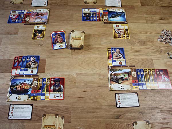 Die Varianz bringen die Expeditionstableaus ins Spiel und hier gibt es stärkere und schwächere Tableaus (persönliche Meinung). Den Jeep und das Schiff empfanden wie als am stärksten. Der Jeep ermöglicht immer zwei Spielzüge, hat dafür aber schlechte Startwerte, und das Schiff ermöglicht immer eine Ausrüstung anzulegen und hat dazu noch gute Startwerte bei der Ausrüstung.
