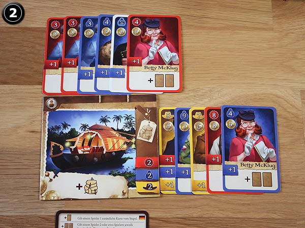 Spieleranzahl – Das Spiel bleibt unabhängig von der Spieleranzahl immer gleich, d.h. jeder Spieler hat ein Expeditionstableau und 6 Karten, die er ablegen muss.