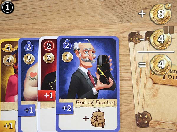 – Die Spieler erhalten Münzen entsprechend den Münzwerten auf ihren Expeditionsteilnehmern.