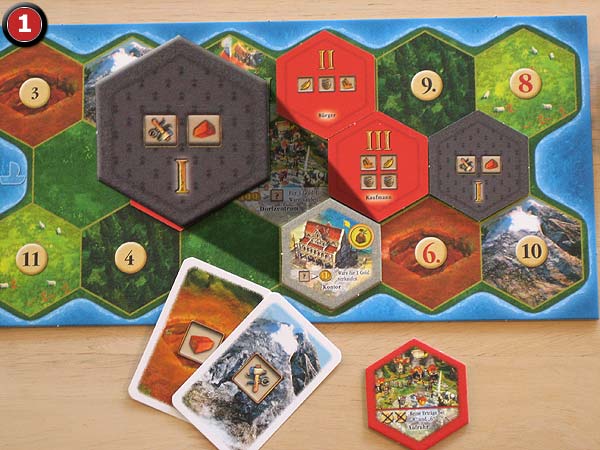 Einer der größten Unterschiede zum klassischen Siedler ist, dass alle Spieler identische Startressourcen haben. Nur bei der Würfelzahl auf den Ressourcen gibt es Unterschiede.