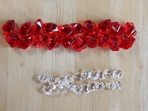 Das Spielmaterial besteht aus 200 Karten und 50 Juwelen, wobei die Karten qualitativ etwas zu bemängeln sind. Alle Karten in meiner Ausgabe lagen schon leicht gewölbt in der Spielbox und die Karten sind per se nicht super fest, aber auch nicht super schlabbrig, sondern irgendwo dazwischen. Das Mischen halten sie aber durch, ohne mehr als den üblichen Schaden zu nehmen. Die Juwelen aus Kunststoff sind hingegen schön gelungen und eignen sich sehr gut zum Zählen der Ehre.