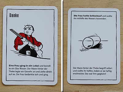 Wem es somit schwer fällt sich auf so etwas einzulassen, der wird auch keinen Spaß an "black stories" haben.