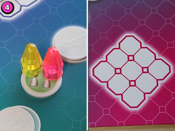 – Landet ein Spieler auf einer schon besetzten Scheibe, so muss er mit jedem dort befindlichen Spieler ein Kubusteil tauschen.
