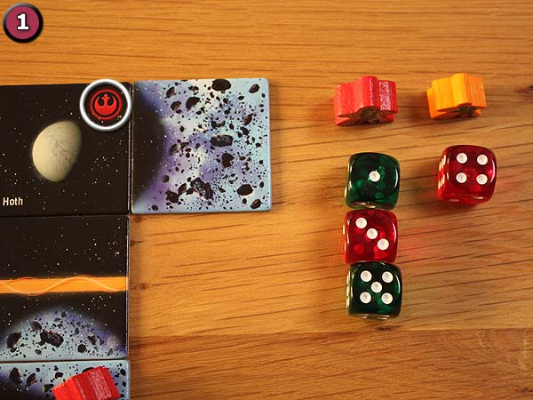 In jedem Gebiet (Handelsrouten, Asteroidenfelder und Planeten) bringt jedes Fraktionssymbol 2 Punkte.