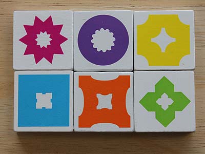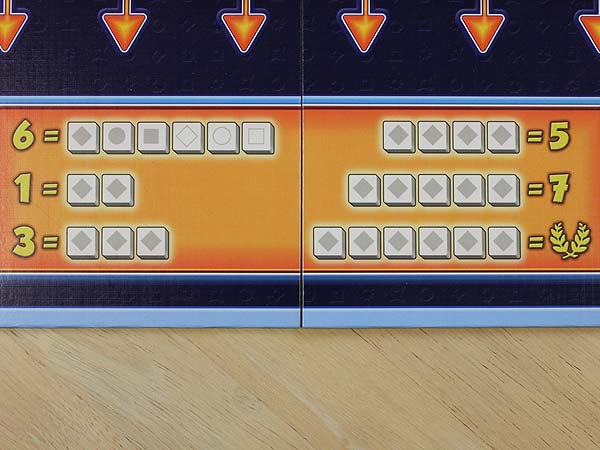 Mit ihnen werden die Felder auf dem Spielbrett gefüllt und Punkte für die Teams erzeugt. Punkte gibt es nämlich für gleiche Steine in einer Reihe, je mehr gleiche Steine desto mehr Punkte oder für eine Reihe bestehend aus komplett unterschiedlichen Symbolsteinen. Schafft es ein Team eine Reihe komplett mit Symbolsteinen einer Art zu belegen, so gewinnt es das Spiel sofort. |