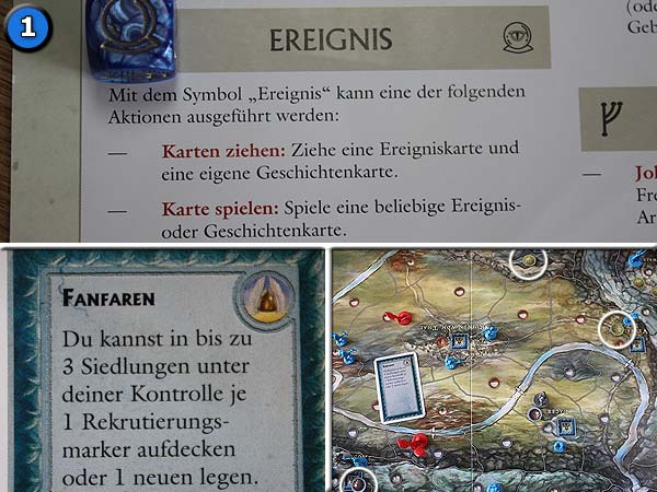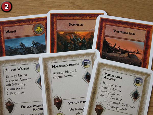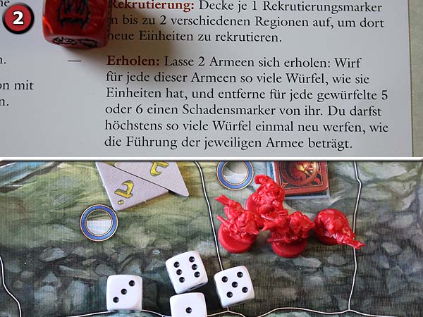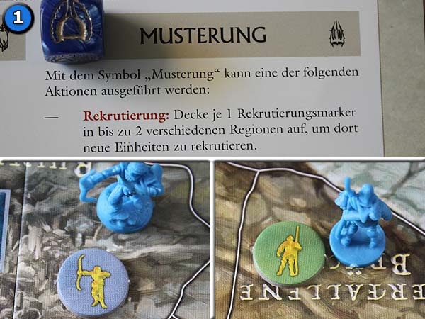 "Möchte ein Spieler zum Beispiel eine Armee mit 2 Führungsmarkern und 2 Charakteren bewegen, hat aber kein einziges Charaktersymbol gewürfelt, dann kann er die Armee nur ohne Marker und Charaktere bewegen, was diese sehr viel schwächer macht."