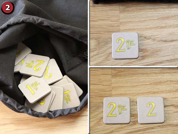 Die Zahl auf dem Plättchen gibt an wie schnell der Schicksalsmarker voranschreitet und das mögliche Schicksalssymbol, ob eine Schicksalskarte gezogen werden muss.