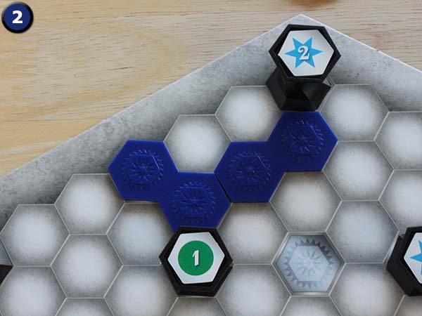 Auf dem Spielplan legen die Spieler ihre Spielsteine ab, um Türme miteinander zu verbinden.