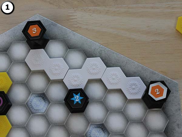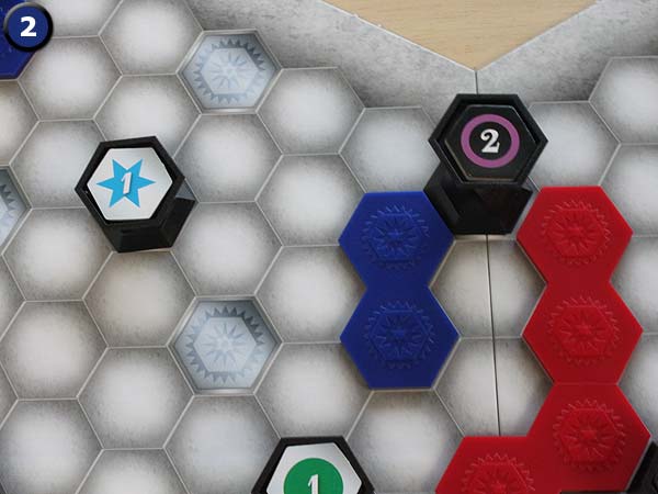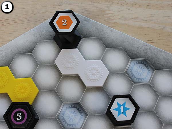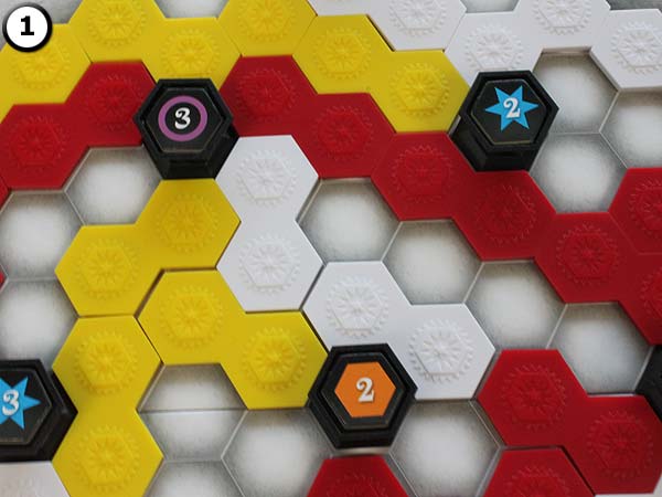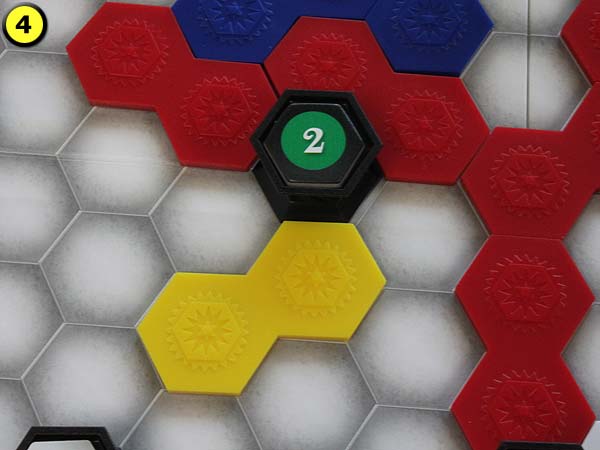 Immer wenn ein Turm das erste Mal gewertet wurde, wird der Zahlenchip umgedreht und für den Rest des Spiels liegt die dunkle Seite oben.
