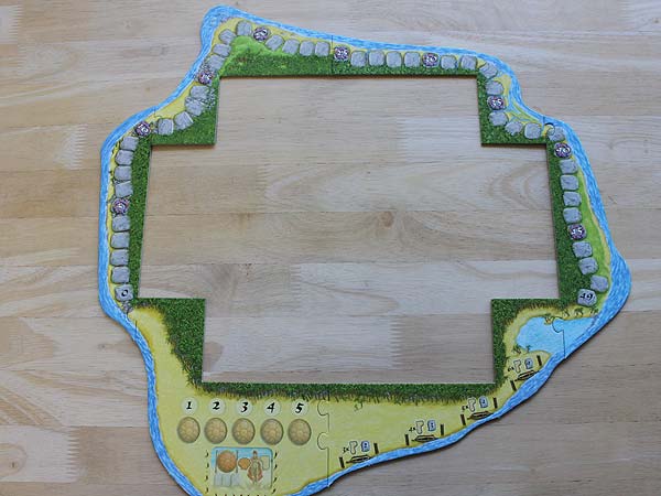 – Der Spielplan wird aus den 6 Puzzleteilen zusammengesetzt.
