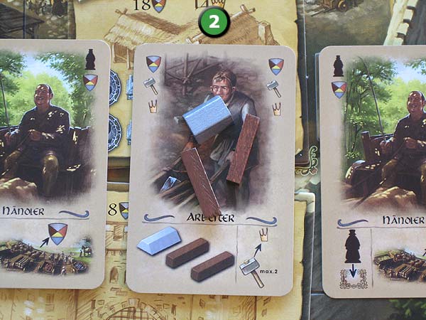 Zum Beispiel besorgen Arbeiter sehr viele neue Rohstoffe, können aber sehr schlecht bauen. Ein Bote bringt Münzen oder ein Baumeister Punkte für Bauwerke anderer Spieler.