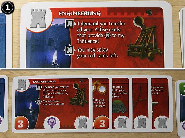 – Dominate: Ein Zeitalter dominieren, wenn ein Spieler mindestens die 5-fache Anzahl an Einfluss und ein Karte des Zeitalters oder eines höheren Zeitalters ausliegen hat. Beispiel 4. Zeitalter: Mindestens 20 Einfluss (4 x 5) und eine Karte des 4., 5.,… Zeitalters bei ihm ausliegt.
