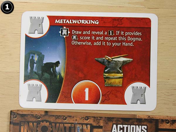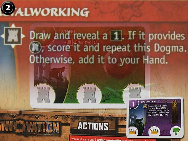 – Draw: Eine Karte aus dem höchsten aktuell beim Spieler ausliegenden Zeitalter ziehen.