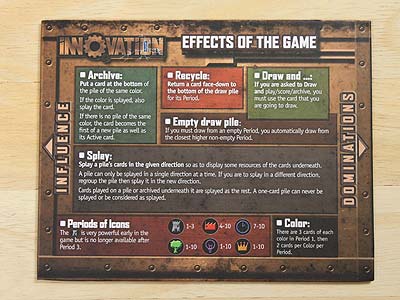 Wie man wohl schon so langsam merkt müssen die Spieler bei "Innovation" viele Karten und Effekte im Blick haben. Erfahrene Spieler wissen zudem welche Karteneffekte in den noch kommenden Zeitaltern zu erwarten sind und können darauf hin spielen. Das Wissen über die Karten und deren Effekte ist daher kein kleiner Spielvorteil.