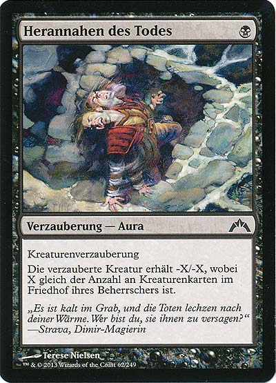 Wie man sich denken kann, folgt Gildensturm dann auch in der Struktur dem vorherigen Set. Das bedeutet, wir dürfen für alle vertretenen Gilden Folgendes erwarten: – Einen Gildeneingang, der Mana in beiden jeweiligen Gildenfarben produziert, allerdings getappt ins Spiel kommt; – Ein "Schockland", das genauso funktioniert, nur dass man zusätzlich die Wahl hat, beim Spielen des Landes zwei Leben zu bezahlen (sich also "schocken" zu lassen), damit es ungetappt ins Spiel kommt; – Einen 2/2 Gildenmagier, ein Amulett mit drei verschiedenen Wirkungen und einen legendären Gildenanführer; Und natürlich eine neue Fähigkeit pro Gilde, worauf wohl die meisten Spieler neugierig waren. Na, dann will ich Euch mal nicht lange zappeln lassen… |