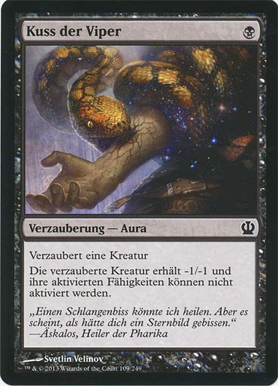 Theros nun spielt in einem sehr stark an die griechische Antike angelehnten Szenario, und obwohl das Set als "Edition der Verzauberungen" angekündigt wurde, spielen diese allerhöchstens eine gemeinsame Hauptrolle mit Helden, Monstern und hingebungsvoll angebeteten Göttern. Und zwar folgendermaßen:
