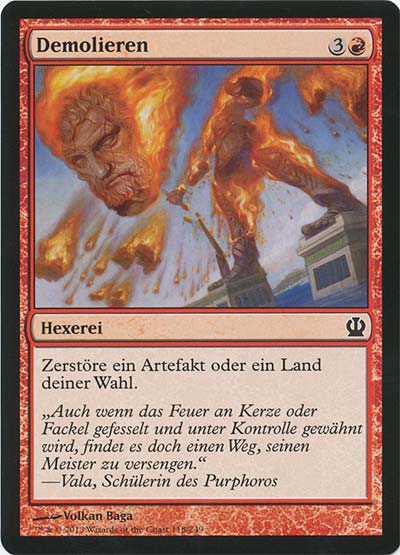 Hrmnaja. Dass die Götter mythisch selten sein mussten, kann ich noch einsehen. Aber es gibt so einige seltene Karten, die es auch eine Seltenheitsstufe tiefer noch gemütlich gehabt hätten, insbesondere die fünf Tempel, die spieltechnisch weder zu mächtig noch zu kompliziert sind.