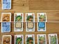 – Kostbarkeiten und Landschaftskarten werden getrennt und verdeckt voneinander gemischt. Von den Landschaftskarten werden 3 und von den Kostbarkeiten 4 Karten offen nebeneinander ausgelegt.