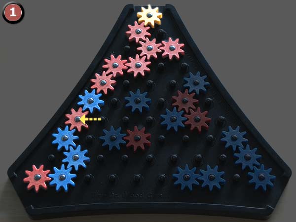 – Ein Spieler kann entweder eines seiner Zahnräder einsetzen oder ein schon liegendes verschieben.
