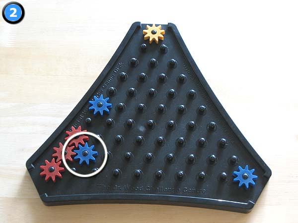 2.) Es dürfen keine 2 eigenen Zahnräder vor das Antriebsrad des Mitspielers gelegt werden.