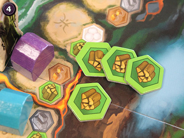 Daher ist die häufigste Hauptaktion im Spiel auch das Nehmen von Gütern.