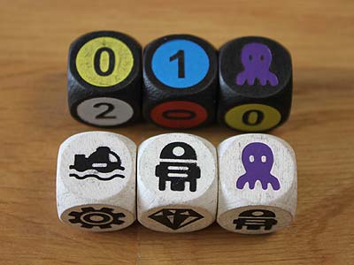 U-Boote und Bots bringen gegen Spielende wenig Punkte, sondern sollten am besten frühzeitig erwürfelt werden. Allerdings muss man sehr viele Aktionen investieren, um eine große Bot/U-Boot-Flotte aufzubauen. Kristalle können gut Punkte bringen, vor allem wenn man immer eine 2 gewürfelt hat. Am besten finde ich aber Forschung, wo wirklich viele Punkte abzugreifen sind.