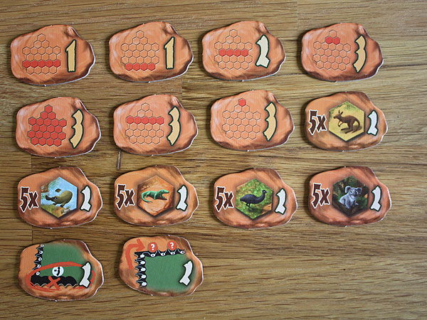 ![]() Outback – Wertungsplättchen und Bonusplättchen |