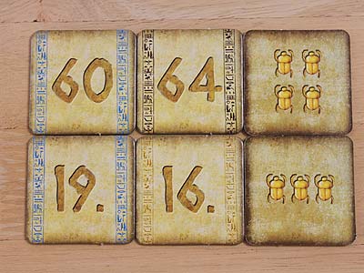 – Jeder Spieler darf nur 1 Skarabäus-Plättchen nehmen.