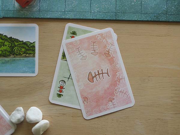 – Hat ein Spieler nicht mehr genügend Steine zum Legen oder tritt er auf einen Piranha, dann endet die Runde und der Spieler muss sich einen beliebigen Piranha vom Spielplan nehmen.