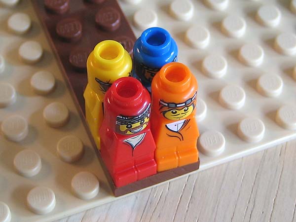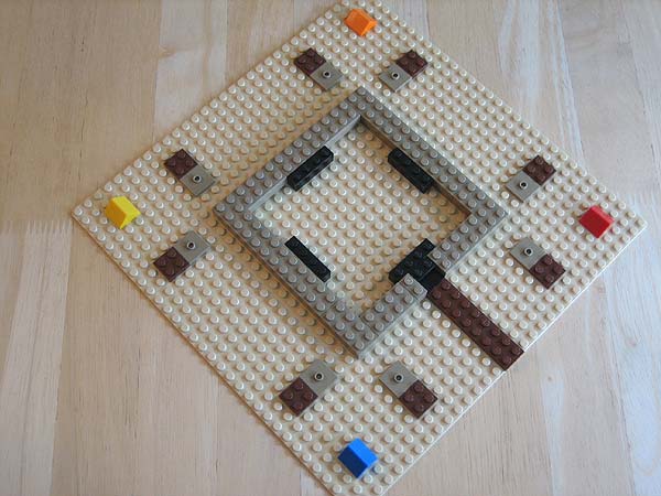 – Nur vor dem ersten Spiel: Spiel aus den einzelnen Legosteinen zusammenbauen.