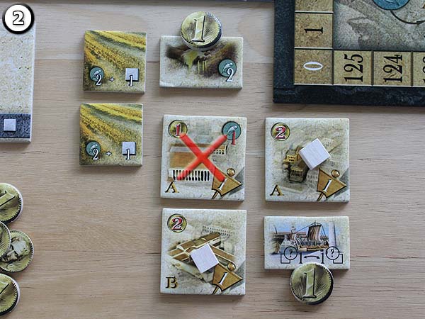 – Ein beliebiges Stadtplättchen nehmen und dessen Kosten bezahlen.