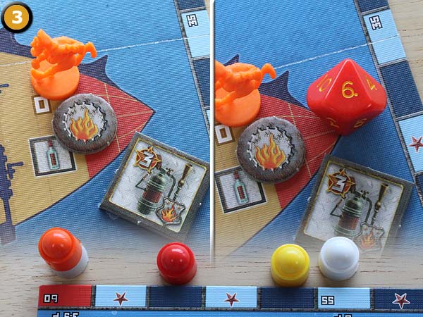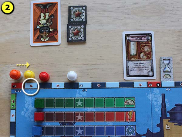 – Es fängt der Spieler an, dessen Zeit-Marker oben aufliegt.