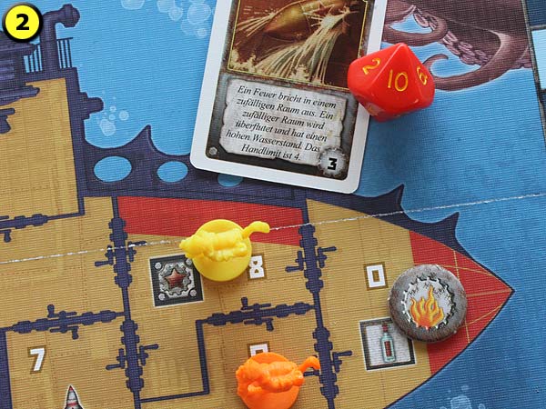 Da wie schon erwähnt die Anzahl der Probleme sehr schnell sehr viel wird und deren Lösung durchaus kompliziert werden kann, ist dieses auch ein Punkt der nicht unbedingt allen Spielern gefällt. Es sieht halt schon ein wenig nach " Wie sollen wir das denn schaffen?" aus, wenn nach der ersten Spielrunde schon das halbe U-Boot unter Wasser bzw. in Flammen steht.