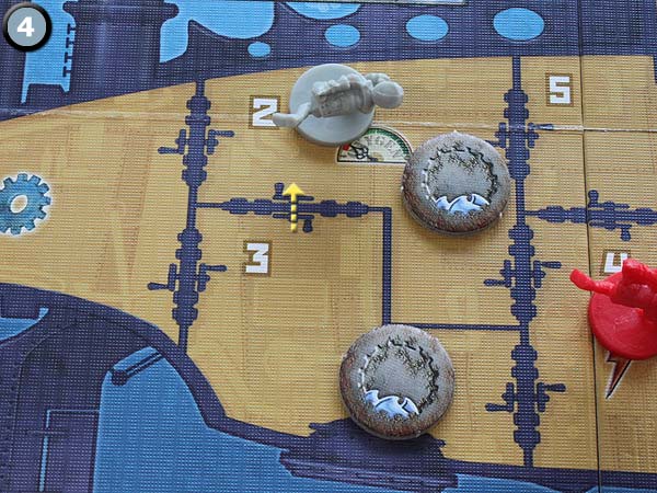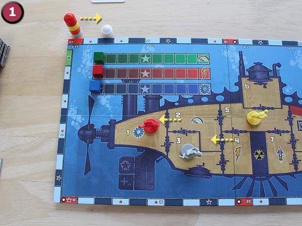Jeder Spieler steuer einen Gnomen-Matrosen durch das U-Boot von Raum zu Raum bzw. von Problem zu Problem, um selbiges zu beseitigen. Bewegungen und Aktionen verbrauchen dabei Zeit, welche auf der Zeitleiste abgetragen wird. |