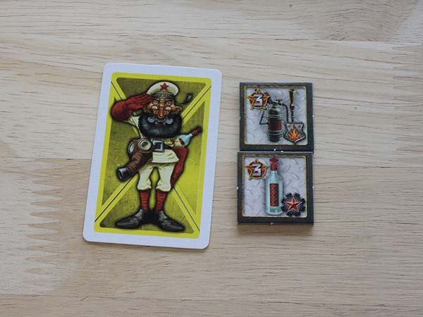 Gegenstände helfen der Besatzung ihre Aufgabe auf dem Unterseeboot zu erfüllen. Es gibt zum Beispiel Feuerlöscher für die Feuerbekämpfung oder Pumpen zum Abpumpen des eindringenden Wassers. Die Zahl auf dem Marker steht für einen Bonus-Minutenwert, welchen der betroffene Spieler erhält. Die Spieler müssen nämlich immer Zeit für die Beseitigung eines Problems aufwenden und dann mit dem zehnseitigen Würfel überprüfen, ob die aufgewendete Zeit ausreicht. |