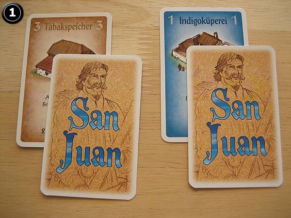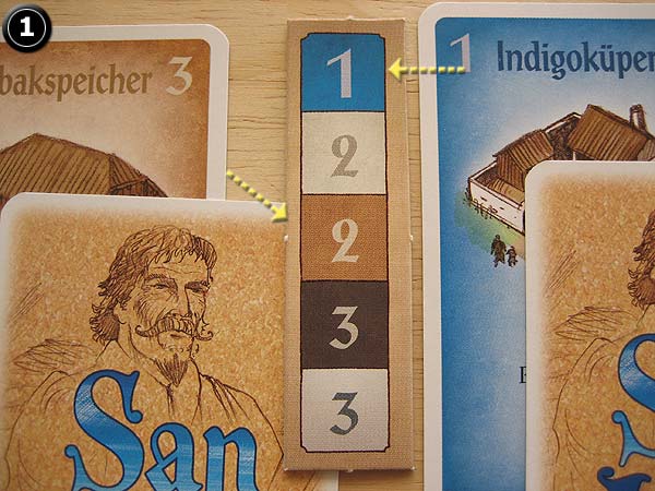 – Jeder Spieler erhält eine Indigoküperei und der Startspieler zusätzlich noch die Gouverneurskarte.