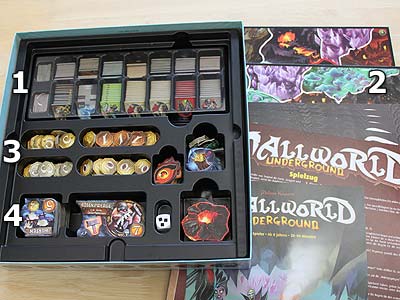 Die Spielbox und der Spielinhalt von "Small World – Underground" ähnelt sehr stark dem Ursprungsspiel "Small World", d.h. Qualität und die sehr guten Unterbringungsmöglichkeiten bleiben gleich. Auch die Illustrationen sind auf gleich hohen und sehr ansprechendem Niveau geblieben.