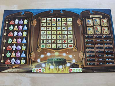 Das Zauberbuch ist doppelseitig bedruckt und wird ähnlich dem Zauberschrank verwendet, d.h. auch hier tippen die Spieler mit dem tiptoi-Stift auf die einzelnen Abbildungen oder Buchstaben, um eine Aufgabe zu lösen. Auf der Rückseite stehen 14 Hinweise, welche die 6 Freunde des Zauberers beschreiben. Eine Aufgabe im Spiel gibt dem Spieler zwei Hinweise, damit dieser damit den zu Besuch kommenden Freund identifiziert kann. |