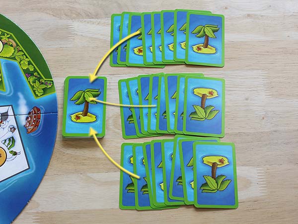 – Bei Anfängern kommen vorher die Spielplan drehen-Karten aus dem Spiel.
