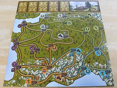 Sind auf allen Feldern zwischen zwei Städten Meilensteine errichtet, kommt es zum Bau und Wertung der Straße.