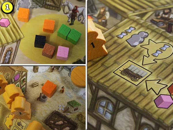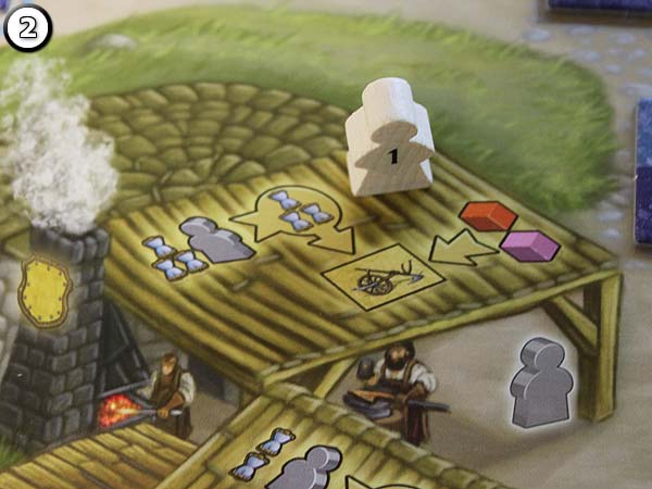 – Entweder ein Produkt durch Abgabe bestimmter Einflusssteine kaufen oder eine Spielfigur vom Hof auf ein Handwerksbetrieb einsetzen, dort ausbilden und ggf. noch das Gut durch weitere Abgabe von Zeit herstellen.