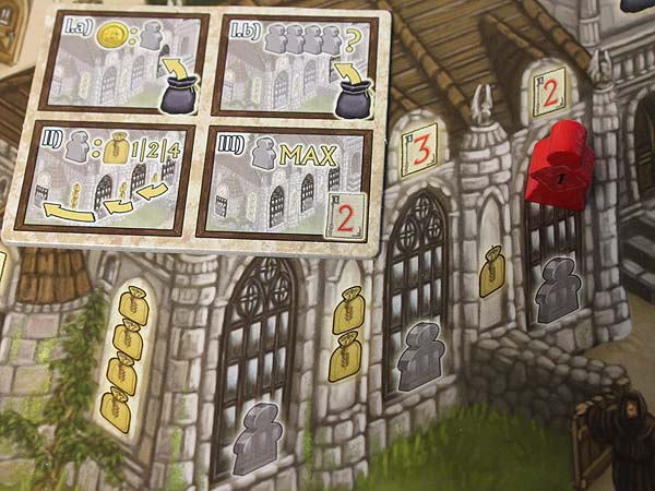 "Solltet ihr es also auf die Ruhmespunkte für die Schlusswertung in der Kirche oder Ratsstube abgesehen haben, sind Figuren mit einer höhreren Zahl zumeist die bessere Wahl."