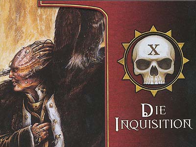 Die Inquisition ist der verlängerte Arm des Imperators und kommt zum Einsatz, wenn der Glaube der Menschen in Gefahr ist. Die Organisation ist groß und unübersichtlich. Es gibt verschiedene Gruppen innerhalb der Gesellschaft, die jeweils andere Spezialisierungen haben: die Jagd nach den inneren Feinden und der Korruption, die Gefahren durch Außerirdische, die Bekämpfung der Dämonen des Warps etc..