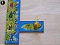 Es gibt drei grundlegende Inselplättchen: [1] Inselanfang. [2] Insel-Mittelteil. Hiervon gibt es verschiedene Versionen. [3] Inselende. Die Schiffsplättchen unterscheiden sich zum einen in ihrer Segelfarbe, diese gibt an wie weit die Auswirkung des feindlichen Schiffes reicht, und in der Belohnung, wenn diese abgewehrt werden. Die Belohung kann entweder [4] Siegpunkte oder [5] Gold sein. |