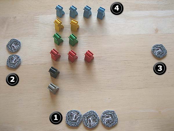 – Es werden 13 Figuren gezogen und 4 Sonderplättchen aufgedeckt.